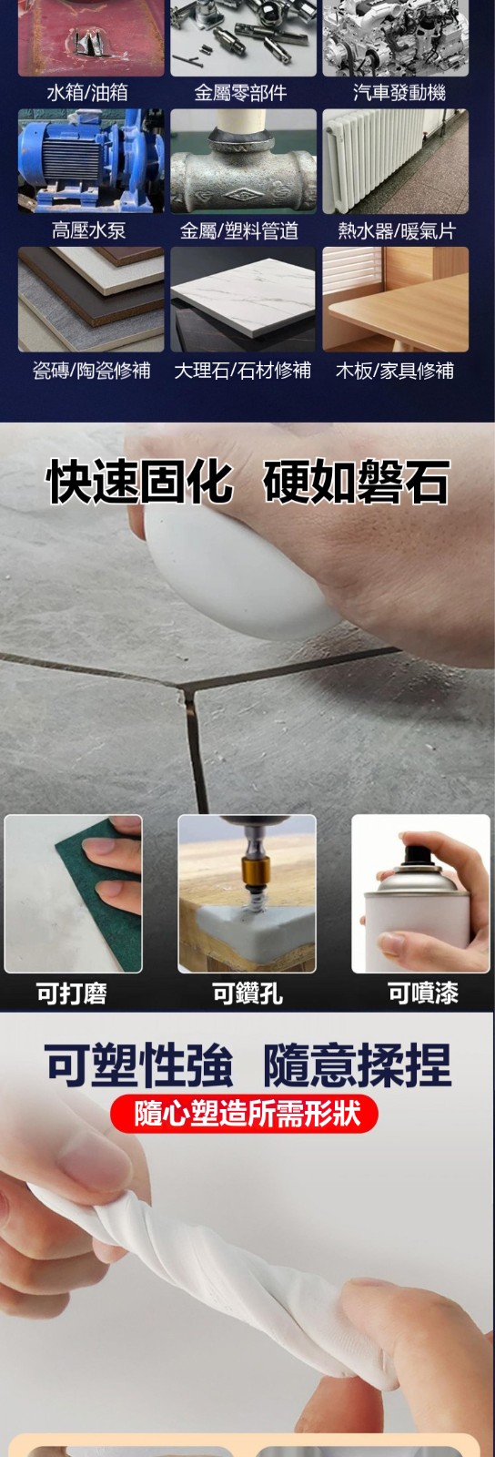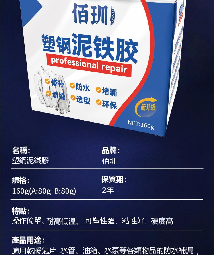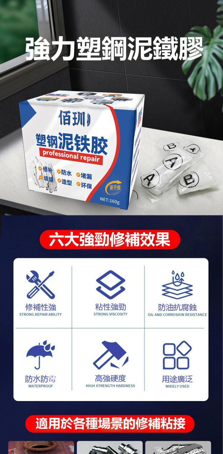 11分鐘前2025新款強力塑鋼泥鐵膠!修補性強,粘性強勁,放油防水防腐蝕!快速固化,堅如磐石! - 【體驗裝】買一送二 3入組-NT$998